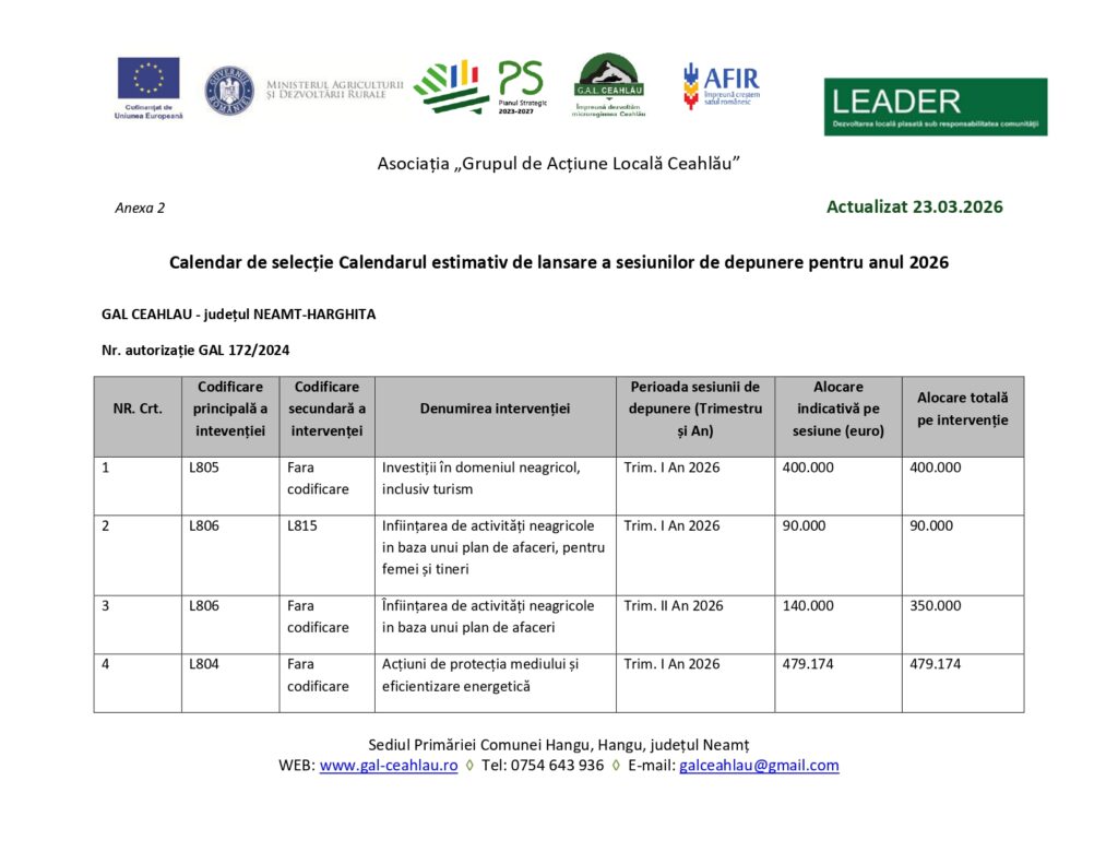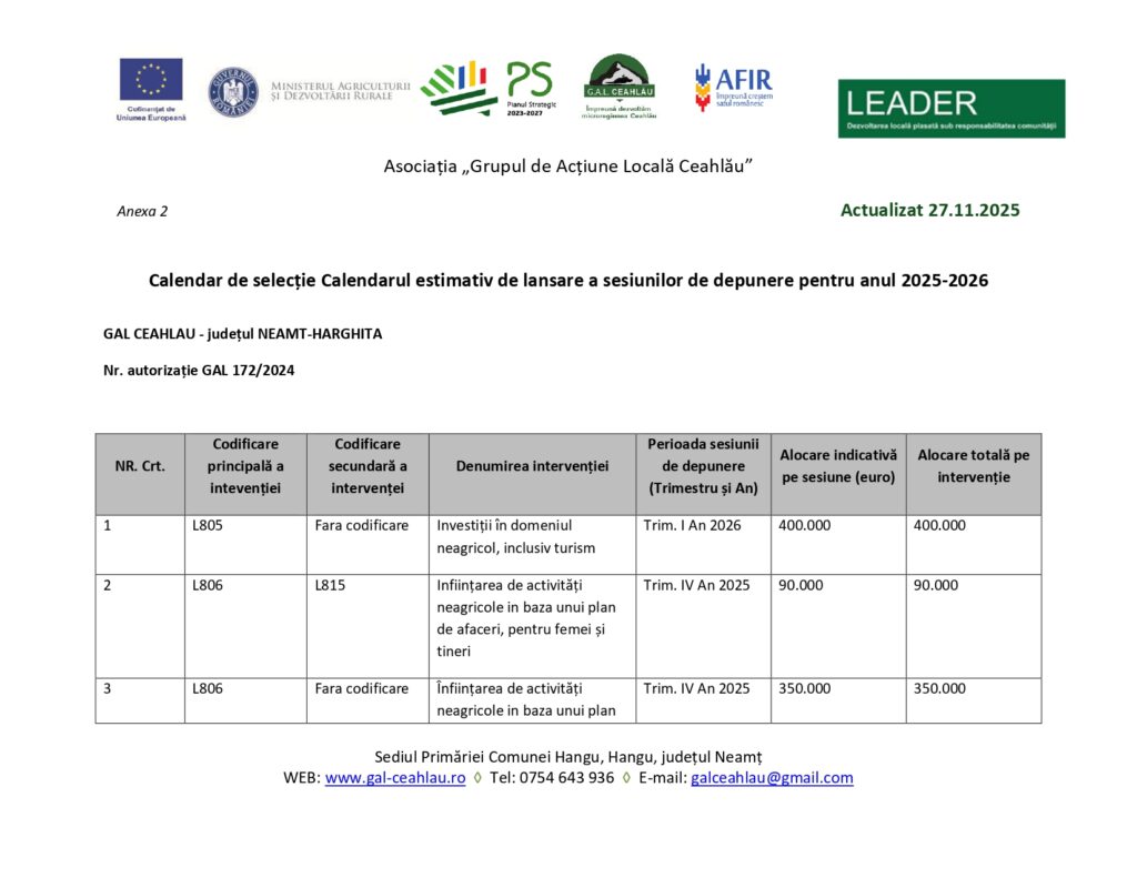 Calendar estimativ de lansare a sesiunilor de depunere pentru anul 2025 – Actualizat la 21 mai 2025